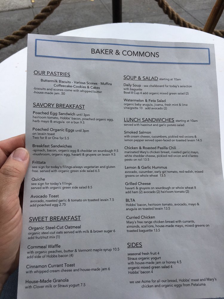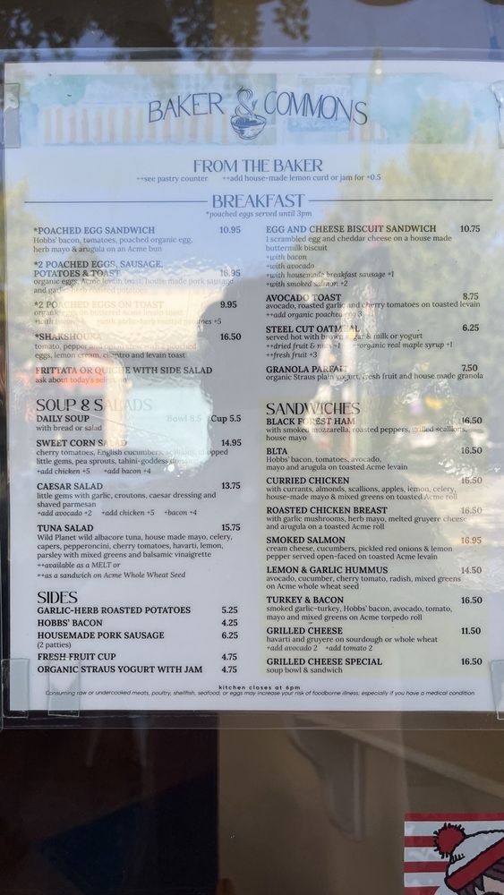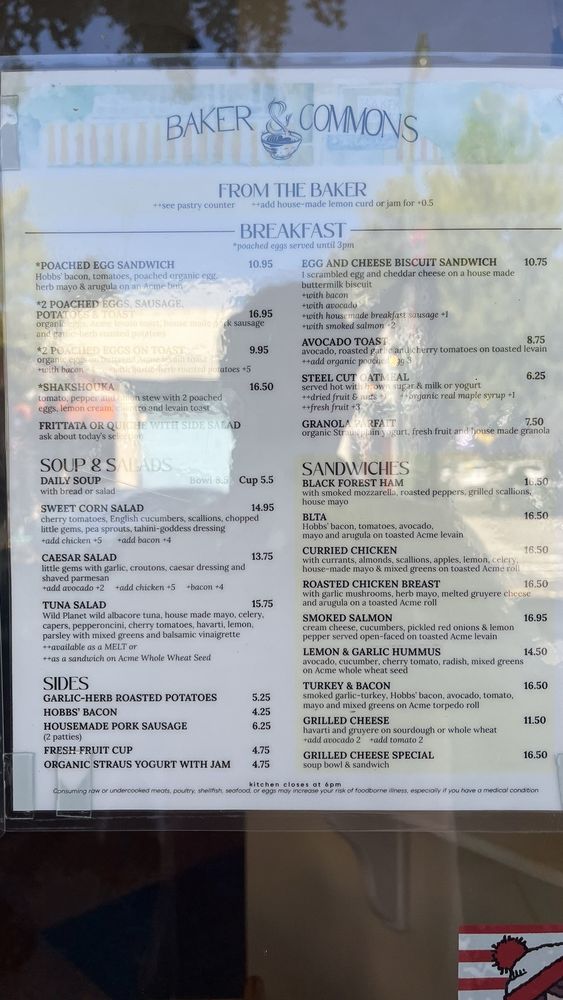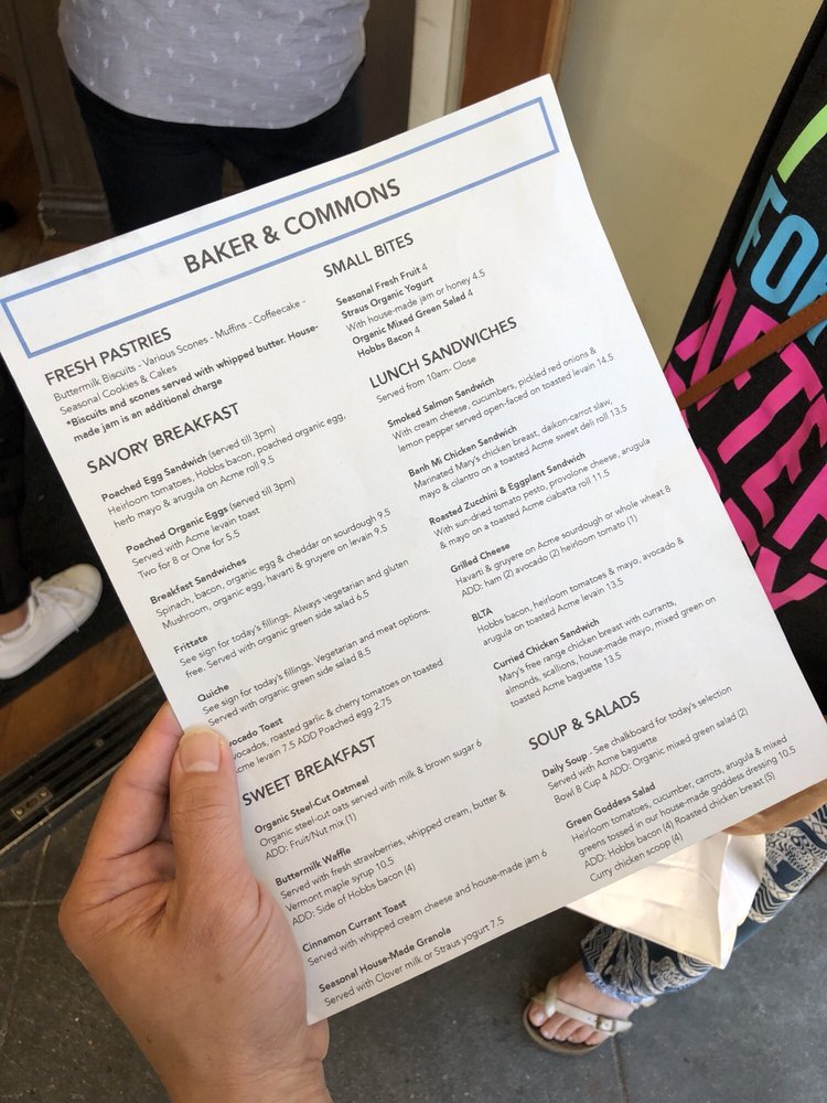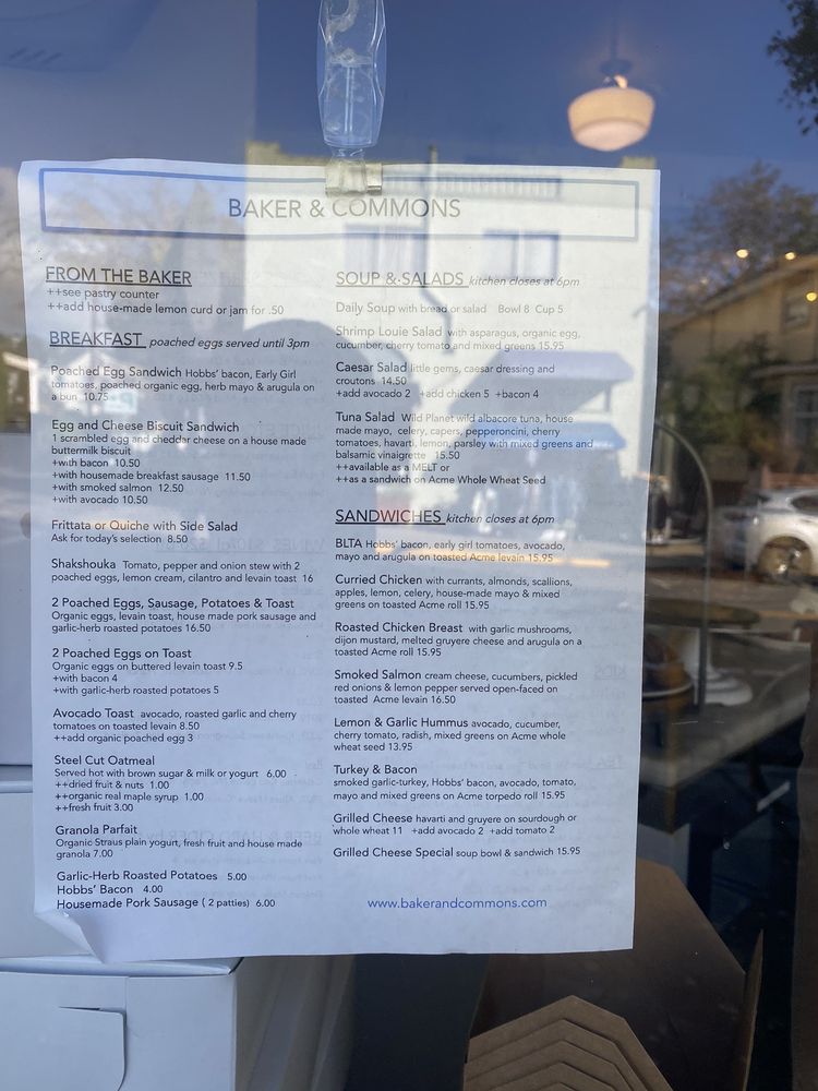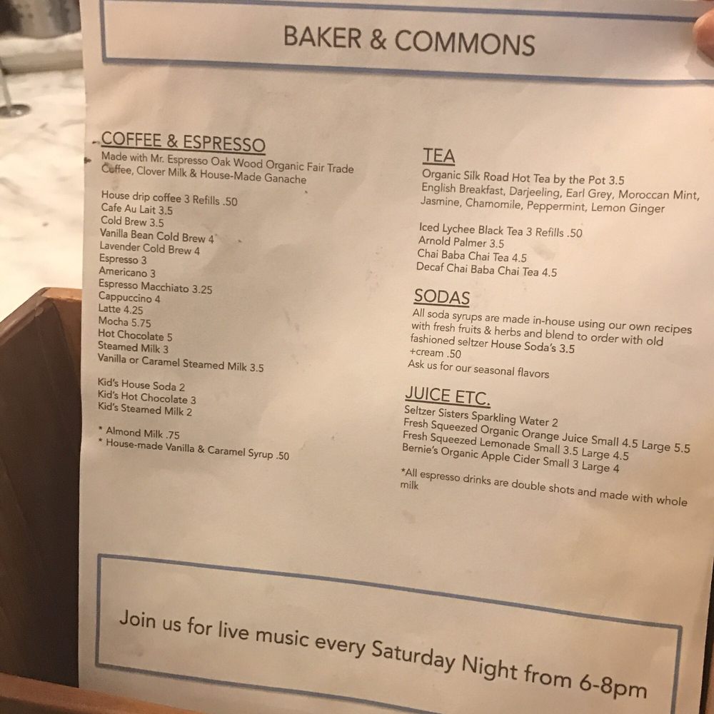 Baker & Commons Menu (Update 2025)